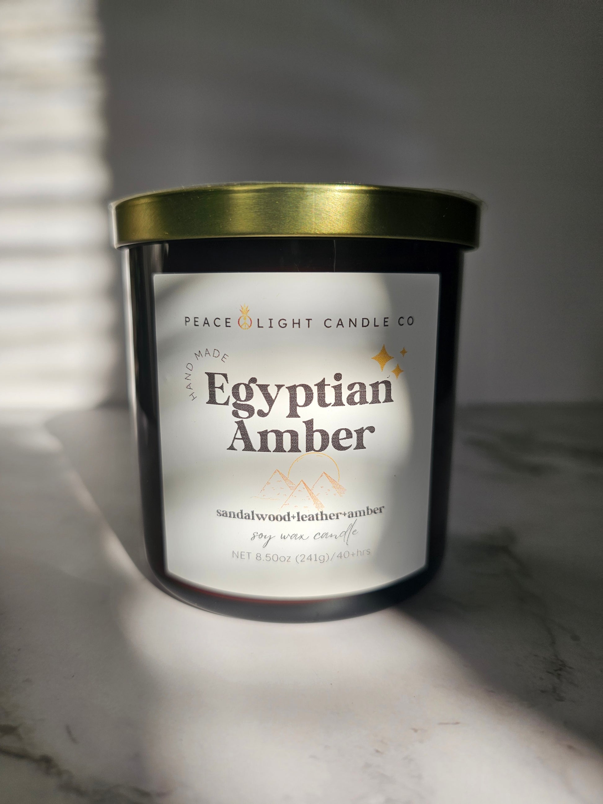 EGYPTIAN AMBER is an alluring, woody fragrance that creates a vibe of opulence in any room. Sandalwood, leather, and amber are uniquely blended to pulled this luxurious fragrance together.