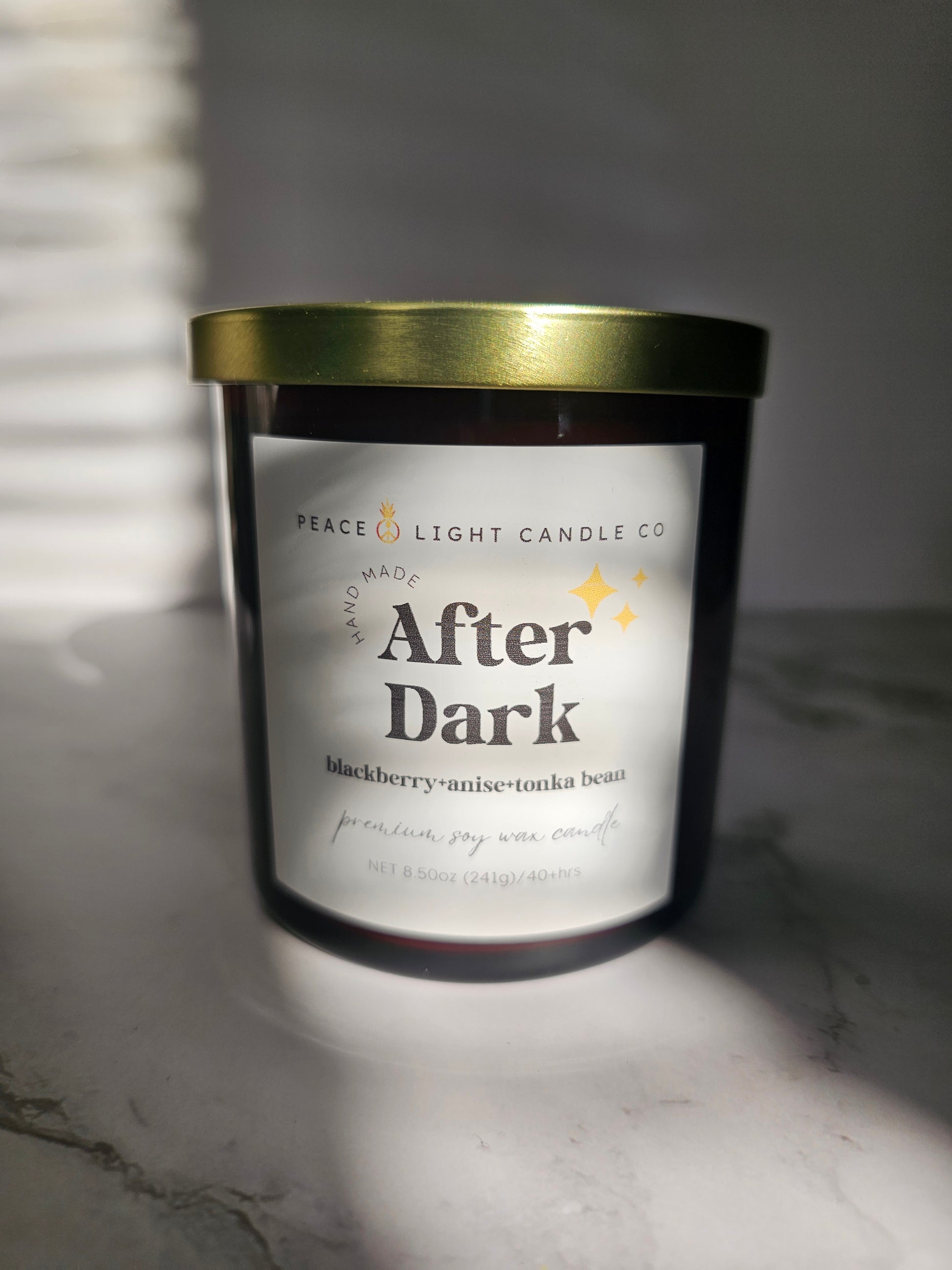 AFTER DARK is a sensual and sophisticated vibe that layers dark fruity notes with warm spicy notes. Scent notes: blackberry, anise and tonka bean.